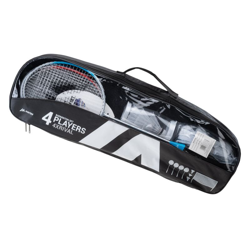Das 4XRIVAL Badminton-Set von Martes umfasst vier Schläger, Federbälle, ein Netz und Stangen zum Aufbauen. Alles ist in einer Tragetasche verpackt , sodass Sie das Spiel überall genießen können. Die Schläger verfügen über ovale Schlägerköpfe, die für eine stärkere Schlagkraft und einen zentrierten Schlag sorgen. Die Griffgröße G3 liegt angenehm in der Hand und ermöglicht volle Manövrierfähigkeit. Das Set ist für das Freizeitspiel im Freien konzipiert.