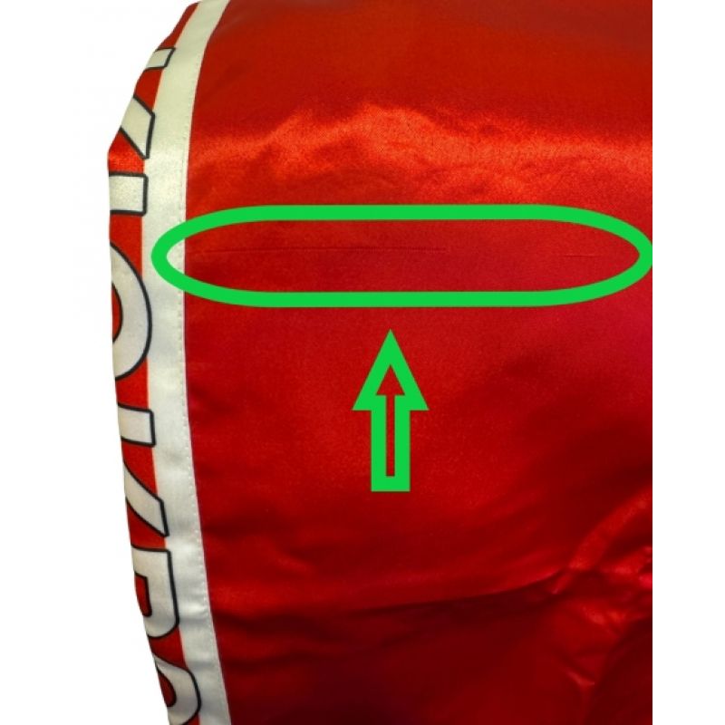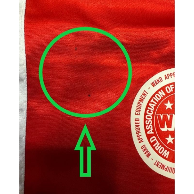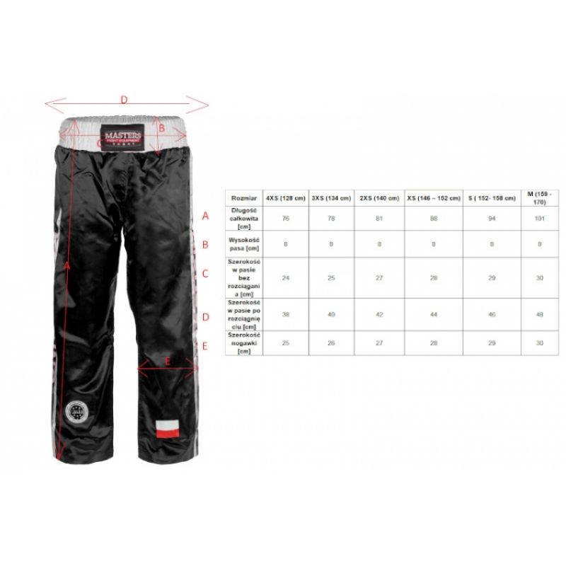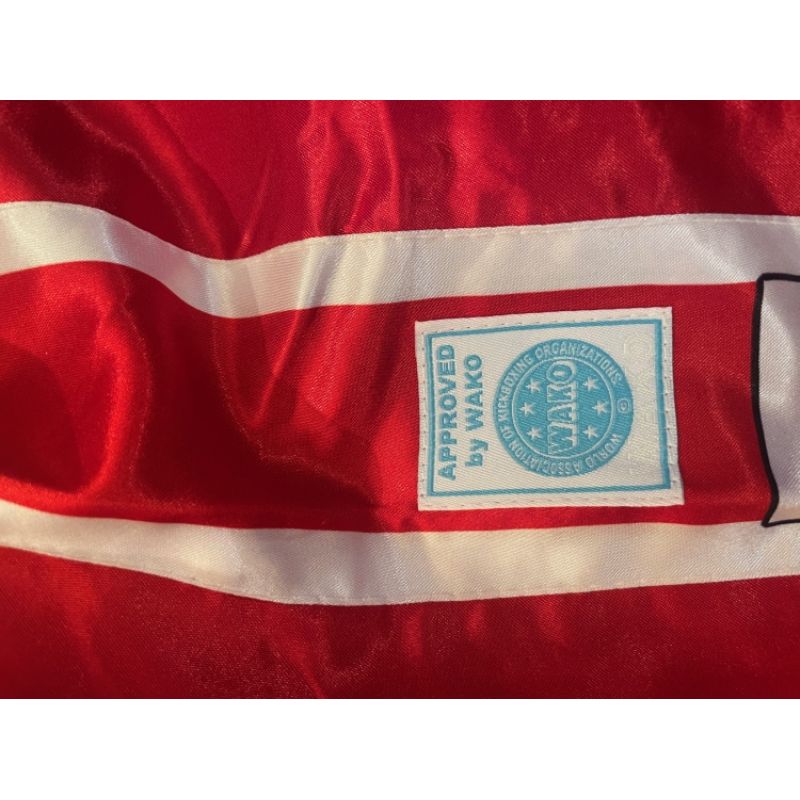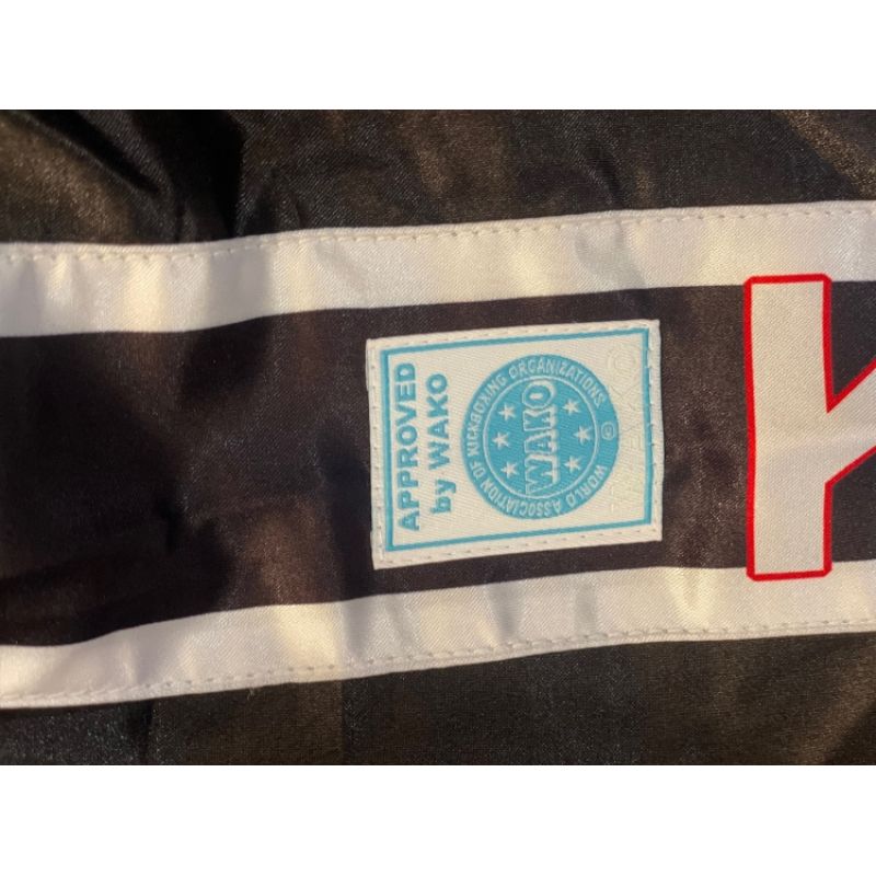- Auf einem Bein befindet sich ein Aufdruck mit der polnischen Flagge und auf dem anderen das WAKO-Logo – sie sind für Kickbox-Wettkämpfe zertifiziert.