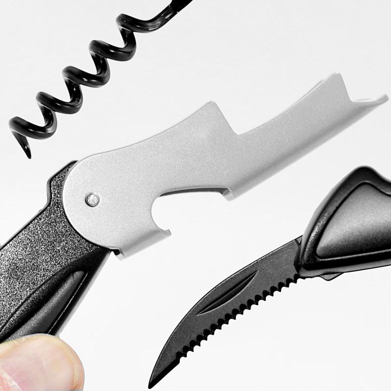 - Anzahl der Funktionen: 3 – Korkenzieher, Öffner, Messer