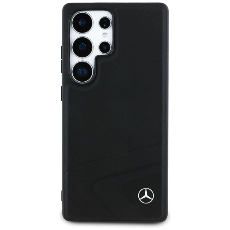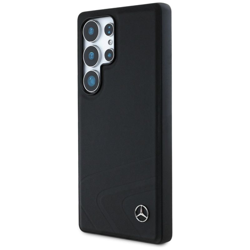 Mercedes Leder Horizontale Prägung Kurven MagSafe Hülle für Samsung Galaxy S25 Ultra - Schwarz