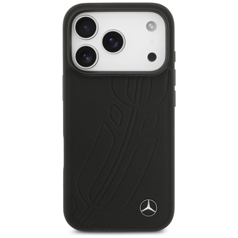Mercedes Lederhülle „Großes Lorbeerblatt“ mit MagSafe-Funktion für iPhone 17 Pro – Schwarz