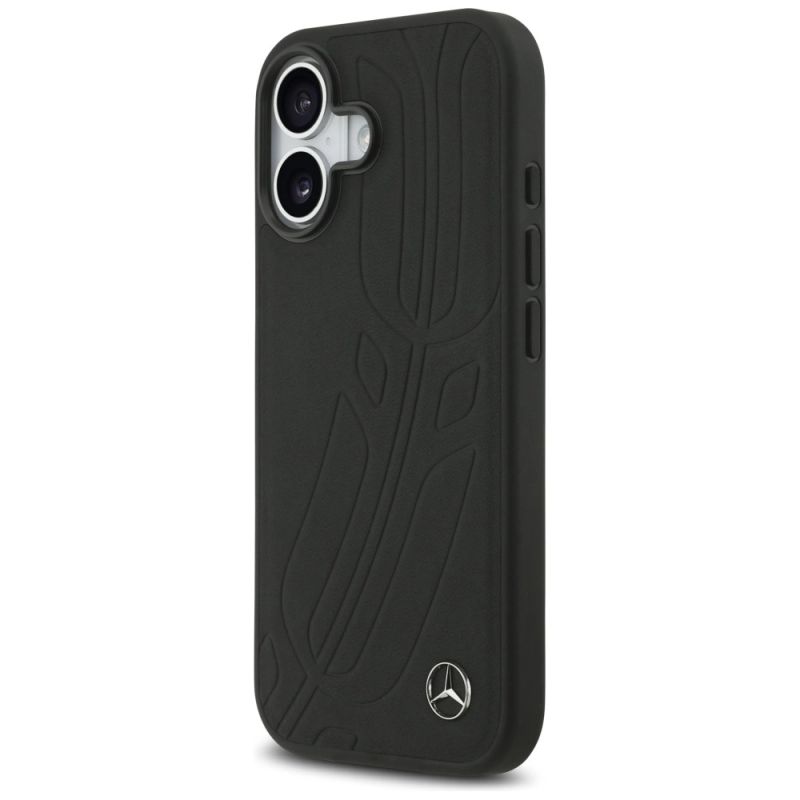 Mercedes Lederhülle mit Lorbeerblatt-Motiv, groß, MagSafe-kompatibel für iPhone 17 - Schwarz