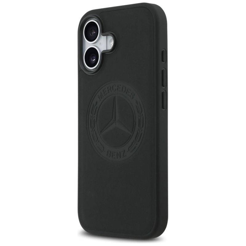 Mercedes Lederhülle mit Vintage-Logo und MagSafe-Funktion für iPhone 17 - Schwarz
