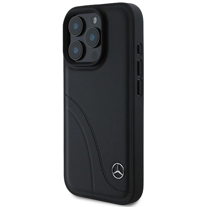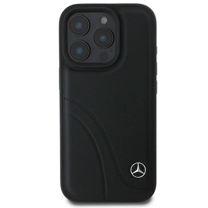 3. Mercedes MB Curved Stitches Lederhülle für iPhone 16 Pro – Schwarz