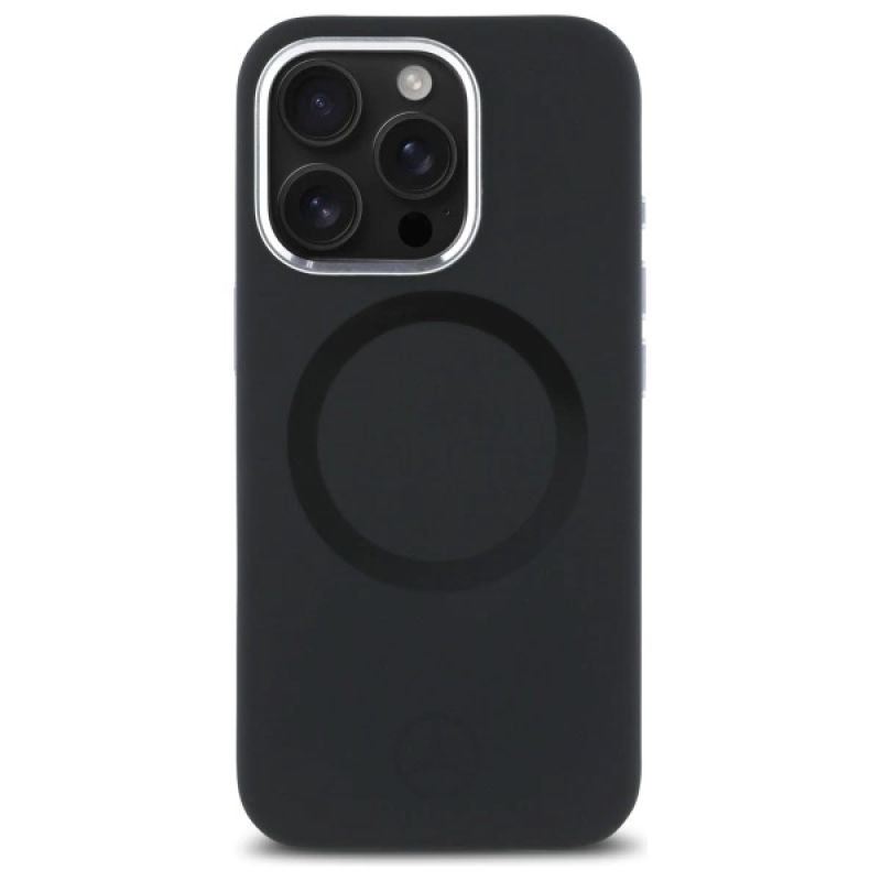 Mercedes Silikon Tonal Logo MagSafe Hülle für iPhone 16 Pro Max – Schwarz
