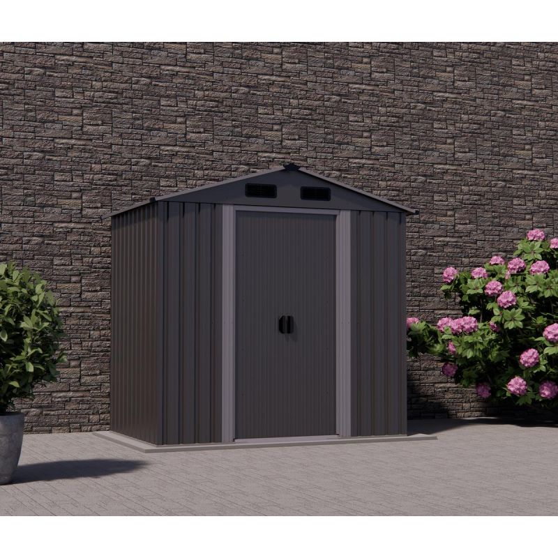 Die robuste Metallkonstruktion und die Vorhängeschlossösen verhindern Einbrüche und bieten einen sicheren Aufbewahrungsort für Ihre Werkzeuge, Ihren Rasenmäher und andere Wertgegenstände.