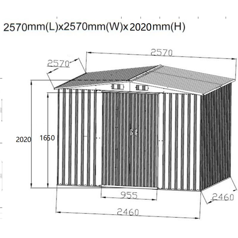 Metall-Gartengerätehaus 257 x 257 x 202 cm
