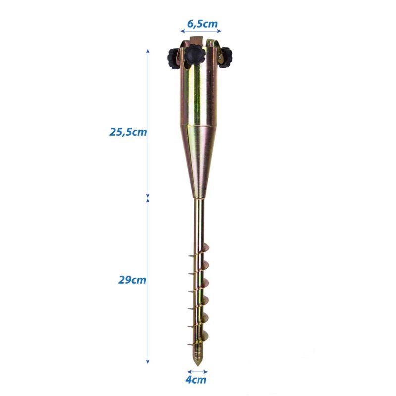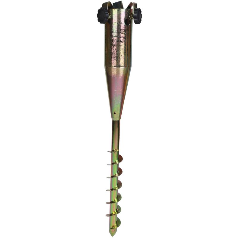 - Ein 29 cm langer Schraubspieß ermöglicht die feste Verankerung des Sonnenschirms im Boden.