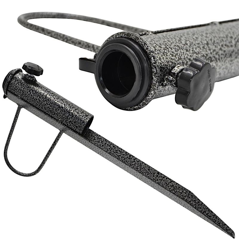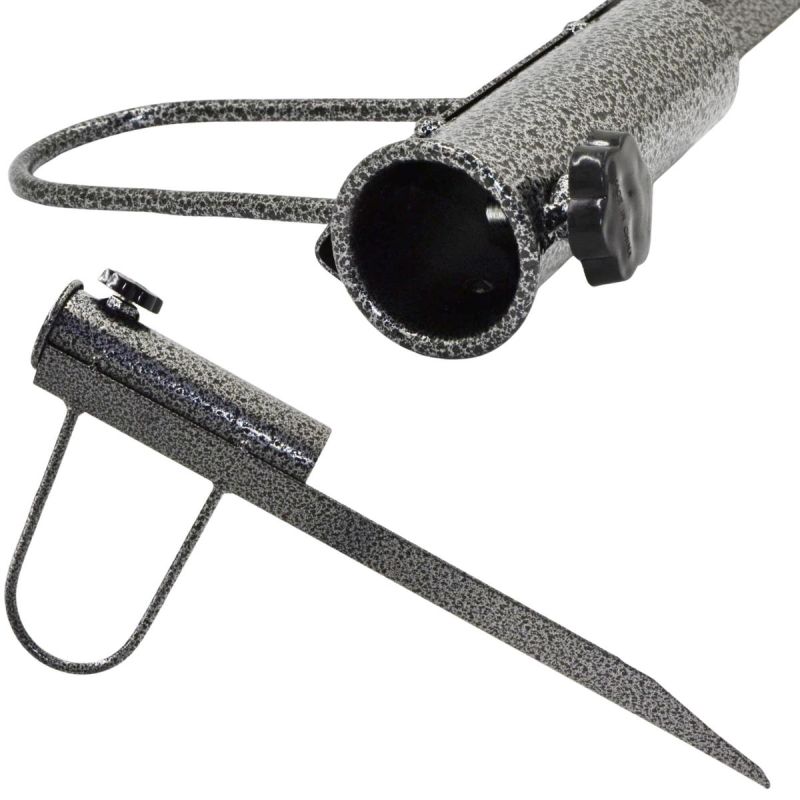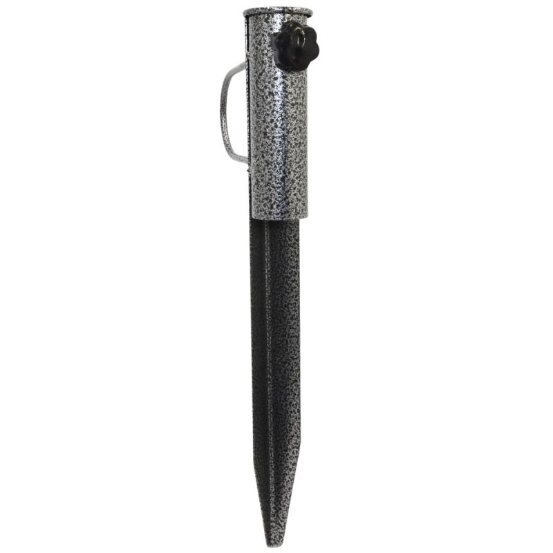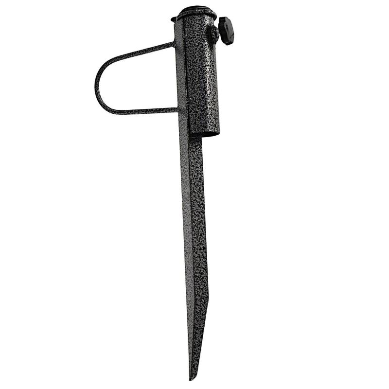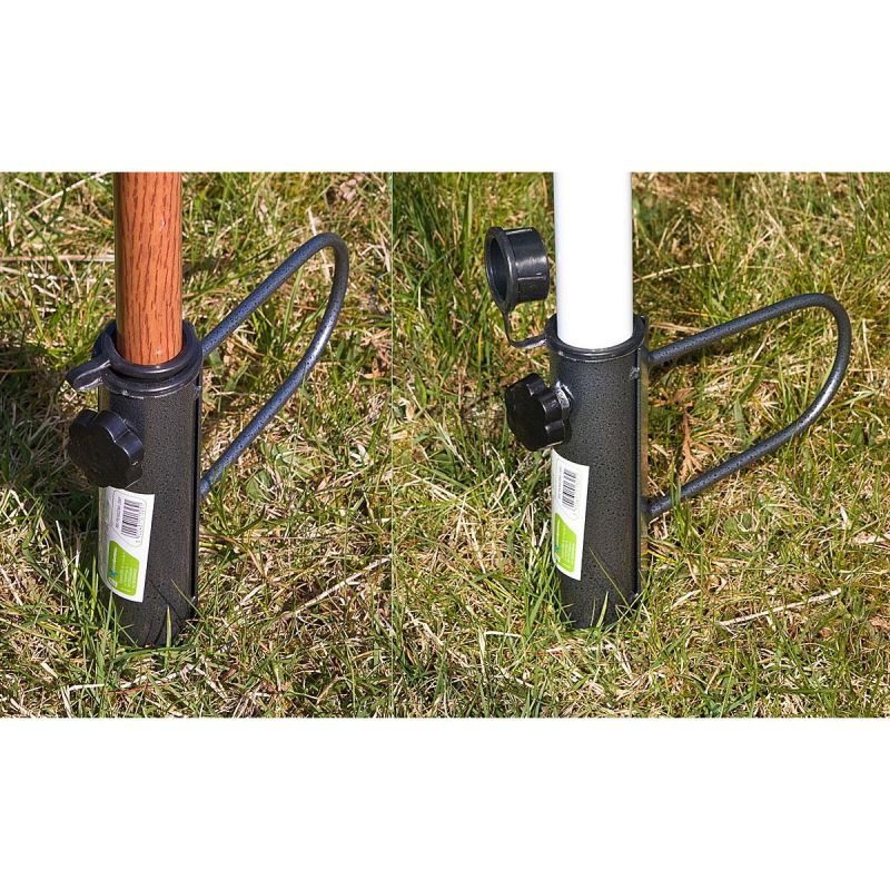 Einfache Handhabung – der geschärfte Stift ermöglicht ein müheloses Einschlagen der Halterung in Sand oder Erde. Es wird kein zusätzliches Werkzeug benötigt. Die Installation ist schnell und intuitiv.