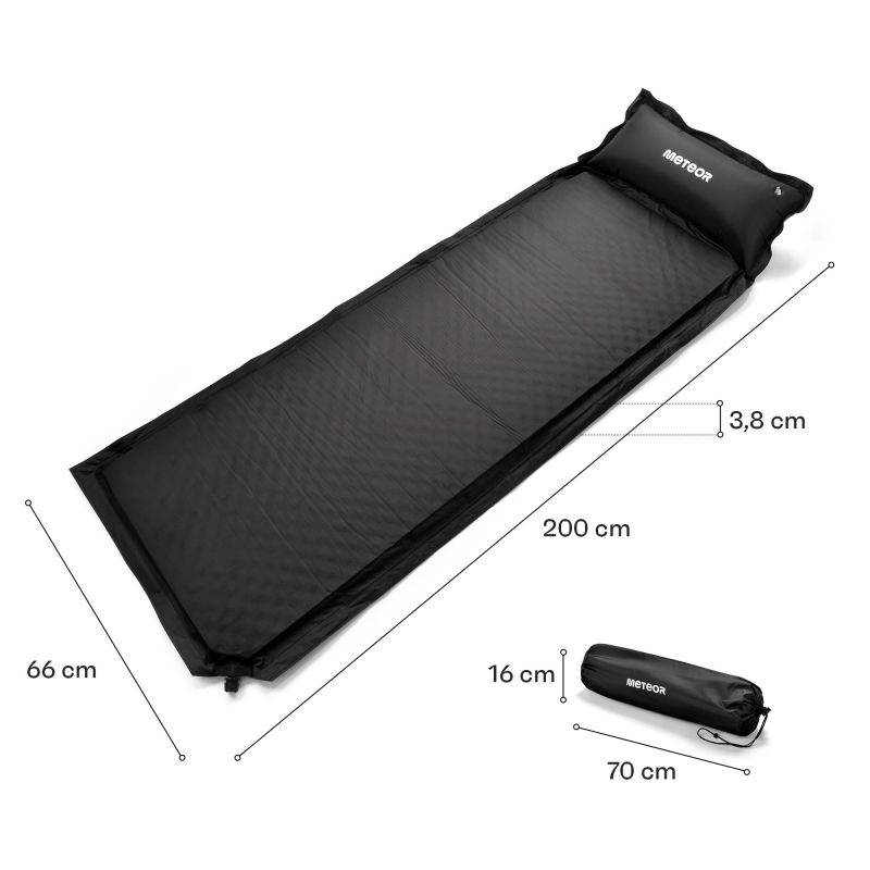 Meteor selbstaufblasende Matte 200×66×3,8 cm schwarz 16437