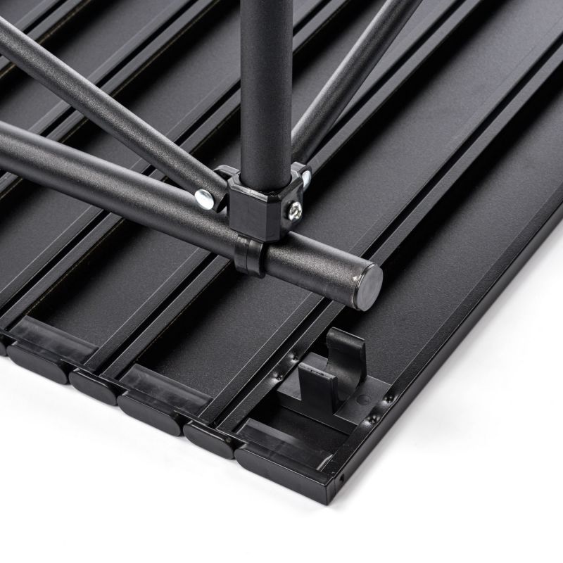 • Einfacher Aufbau – Die klappbare Tischplatte aus Aluminiumplatten ermöglicht einen schnellen und einfachen Aufbau ohne Werkzeug.
