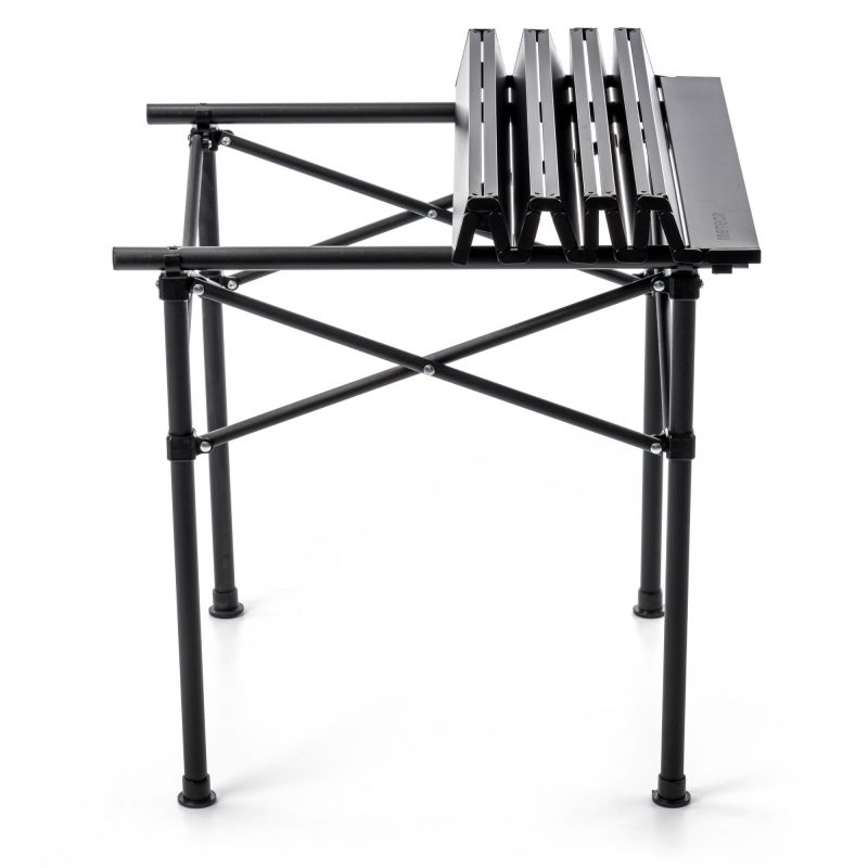 - Die klappbare Tischplatte aus Aluminiumplatten, die mit einem Gummiband verbunden sind, lässt sich einfach zusammen- und auseinanderklappen, sodass der Tisch im Handumdrehen einsatzbereit ist.