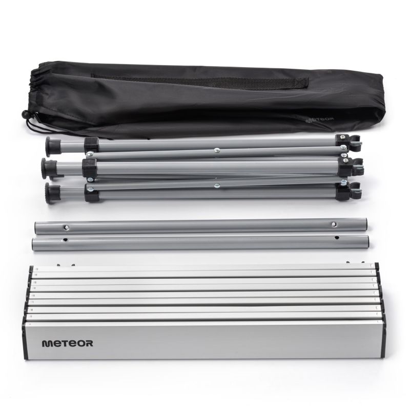 - Dank seiner kompakten Abmessungen im zusammengeklappten Zustand und der mitgelieferten Tragetasche passt der Meteor Bankada-Tisch problemlos in den Kofferraum eines Autos, eines Wohnwagens oder sogar eines Rucksacks.