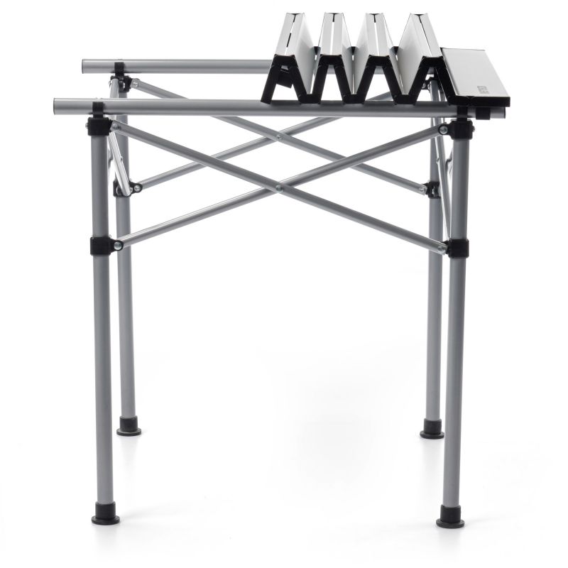 - Die klappbare Tischplatte aus Aluminiumplatten, die mit einem Gummiband verbunden sind, lässt sich einfach zusammen- und auseinanderklappen, sodass der Tisch im Handumdrehen einsatzbereit ist.