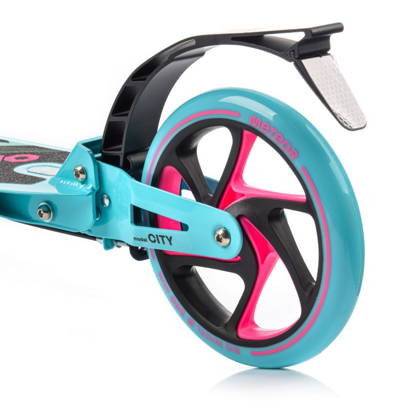 - Zusätzlich ist das Fahrzeug mit Schutzblechen ausgestattet, die vor Spritzern schützen, wenn Sie im Regen stehen und das hintere Schutzblech dient gleichzeitig als Bremse.