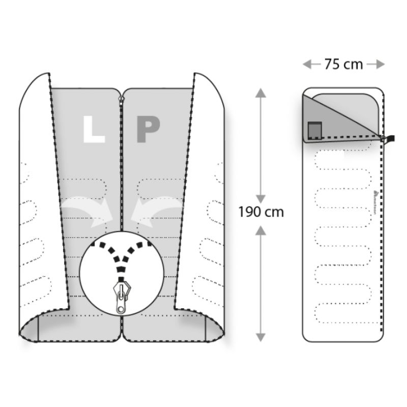 - Dadurch ist es möglich, Schlafsäcke miteinander zu verbinden.