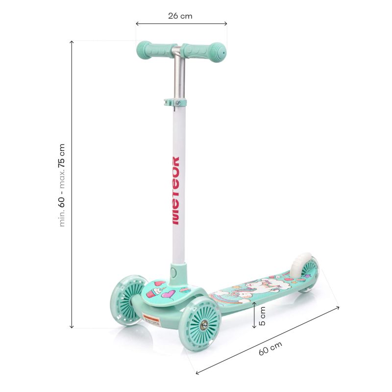 Ergonomische Passform – der Meteor Funny Roller verfügt über eine 4-fach höhenverstellbare Lenkstange, sodass der Roller mit Ihrem Kind mitwächst und jahrelangen Gebrauch ermöglicht. Dank seines geringen Gewichts lässt er sich leicht transportieren, zum Beispiel auf der Rückfahrt vom Spielplatz oder einem Spaziergang, wenn Ihr Kind nicht mehr fahren möchte oder lieber zu Fuß nach Hause geht.