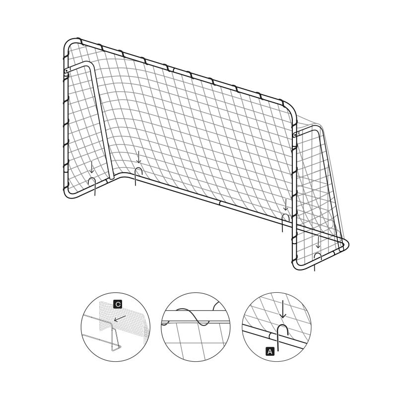 - Im Set sind außerdem Befestigungsanker mit den Maßen 18x5x0,15 cm enthalten, die für eine feste Verankerung des Tores im Boden sorgen und so Stabilität beim Spielen gewährleisten.