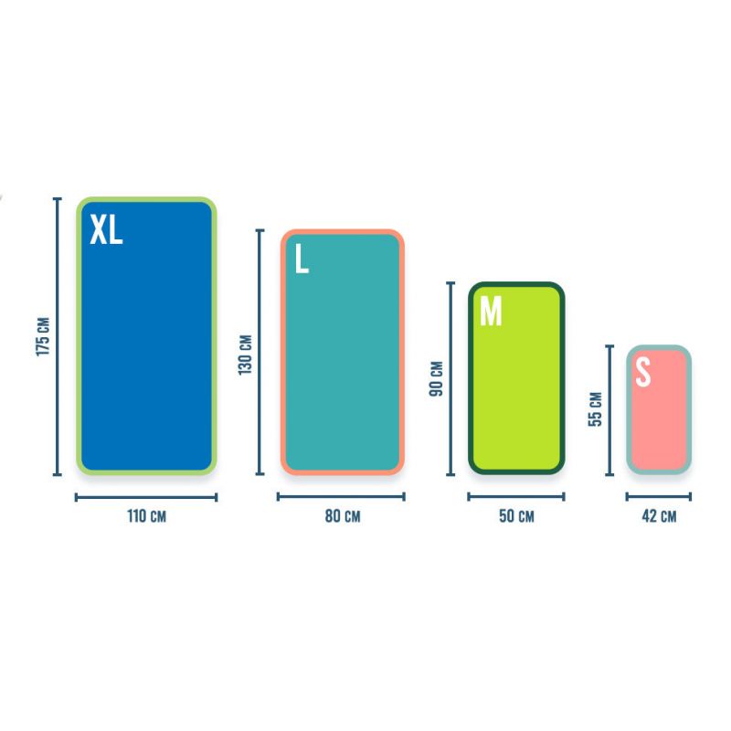 - Die Tücher verfügen über einen eingenähten Gummizug, wodurch sie sich ganz einfach zusammenrollen und transportieren lassen.