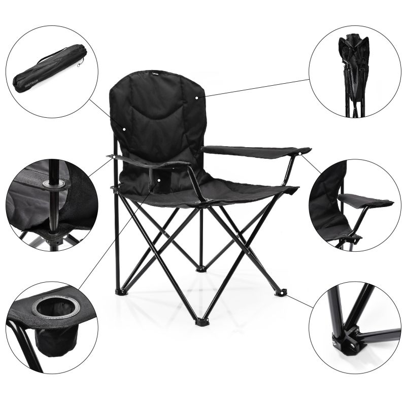 Einfach zusammenklappbar – dank des einfachen Zusammen- und Auseinanderklappens und der praktischen Tasche zur Aufbewahrung und zum Transport ist der Stuhl ein unverzichtbares Ausrüstungsstück für jeden Reisenden.