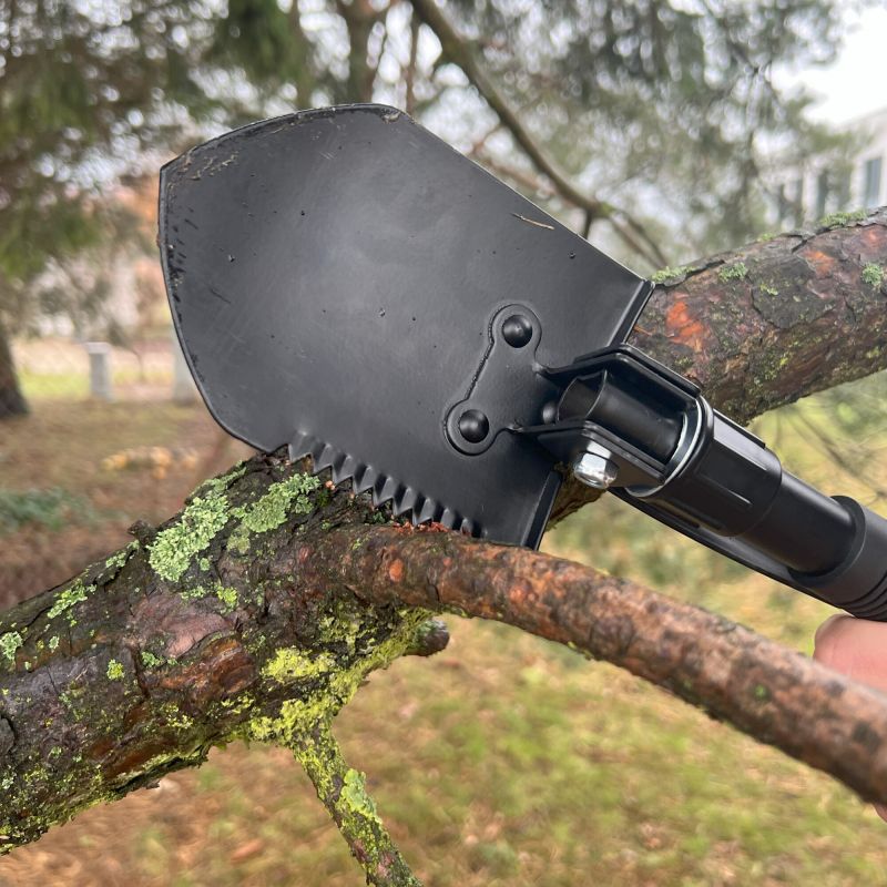 - Dank einer speziellen Rille an der Kante kann die Schaufel auch als Säge verwendet werden, was ihren Nutzen in verschiedenen Situationen weiter erhöht.