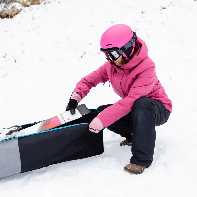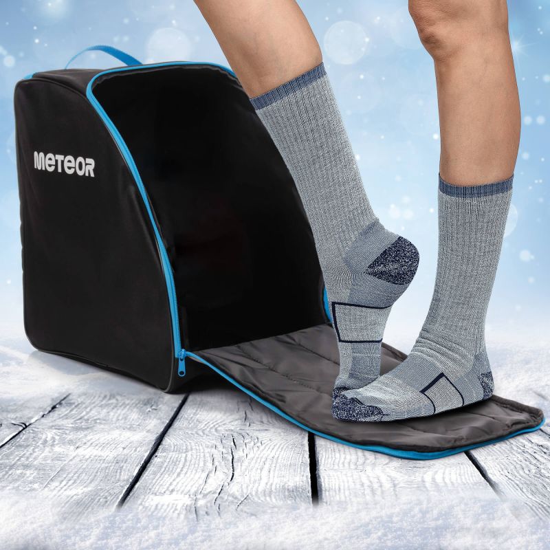 - Langlebige Materialien – die Verwendung von 600D-Polyestergewebe gewährleistet Beständigkeit gegen äußere Feuchtigkeit. Die Klappe der Tasche ist mit PVC-Schaum gefüllt, was sie widerstandsfähiger gegen widrige Wetterbedingungen macht und als Isolierunterlage, beispielsweise beim Schuhwechsel, verwendet werden kann. Mit dieser praktischen Lösung sind Sie schnell und einfach bereit für die Piste!