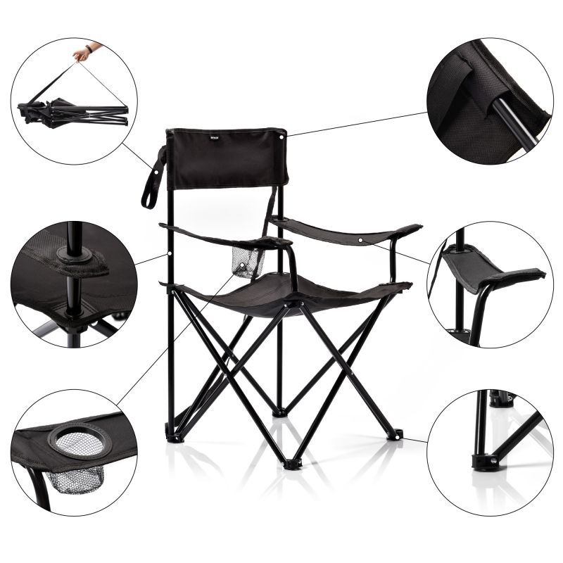 - Das wasserdichte 600D Oxford-Gewebe des Sitzes und der pulverbeschichtete Stahlrahmen bilden eine harmonische Kombination, die Langlebigkeit und Robustheit garantiert. Die stabile Kreuzverstrebung sorgt für Sicherheit, während das einfache Auf- und Zuklappen des Stuhls und die praktische Aufbewahrungstasche Komfort auf jeder Fahrt garantieren.