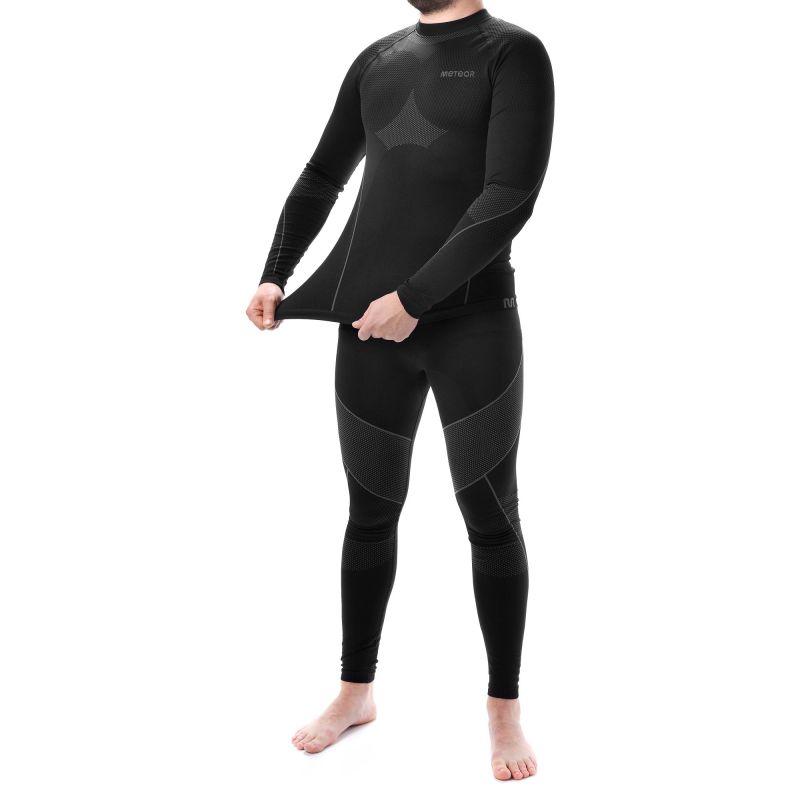- Die Thermounterwäsche für Herren von Meteor, bestehend aus einem T-Shirt und langen Shorts, schützt wirksam vor Kälte und garantiert die effiziente Ableitung überschüssiger Feuchtigkeit, wodurch Komfort bei verschiedenen Arten körperlicher Aktivitäten gewährleistet wird.