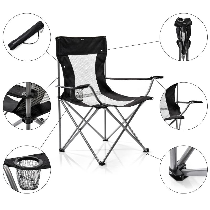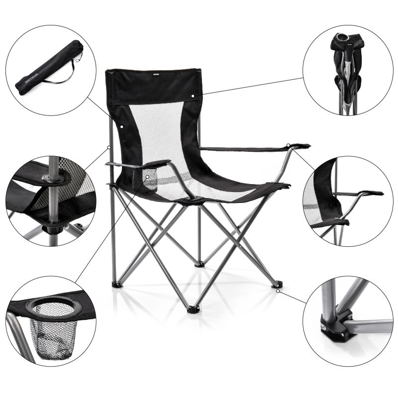 - Der Meteor Tripper Stuhl wurde für Langlebigkeit und Robustheit entwickelt und kombiniert eine Sitzfläche aus wasserdichtem 600D-Polyester und Mesh mit einem pulverbeschichteten Stahlrahmen. Breite Beine sorgen für zusätzliche Stabilität, während die einfache Klapp- und Entfaltfunktion sowie eine praktische Aufbewahrungstasche Komfort auf jeder Reise garantieren.