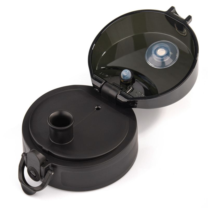 Außergewöhnliche Dichtheit – der Klappdeckel schützt vor Verschmutzung des Ausgusses und verfügt über eine spezielle Verriegelung gegen unbeabsichtigtes Öffnen. Nach dem Verschließen verschließen Silikondichtungen Ausguss und Entlüftung vollständig und gewährleisten so ein leckagefreies und sicheres Tragen und Aufbewahren. So können Sie sicher sein, dass Ihr Getränk auch bei Stößen oder Stürzen nicht aus der Flasche ausläuft.