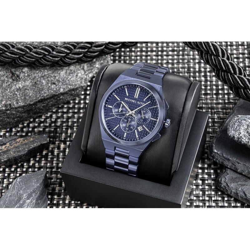 Die Herrenuhr Michael Kors Lennox MK9147 vereint modernen Stil und Funktionalität und ist für Männer konzipiert, die Wert auf Eleganz im Alltag legen. Gefertigt aus tiefblauem Edelstahl, besticht sie durch außergewöhnlichen Stil und Vielseitigkeit und passt perfekt sowohl zum Anzug als auch zu legerer Kleidung. Drei Chronographen-Hilfszifferblätter und eine praktische Datumsanzeige unterstreichen ihren dynamischen und zugleich eleganten Charakter. Ein zuverlässiges Quarzwerk sorgt für Präzision und hohen Tragekomfort. Das Mineralglas schützt das Zifferblatt vor Kratzern, und die Wasserdichtigkeit bis 50 Meter gewährleistet sicheres Tragen in allen Lebenslagen. Die Michael Kors Lennox MK9147 ist ein Modell, das Mode, Qualität und Eleganz vereint – perfekt für den selbstbewussten Mann, der seinen Stil modern und dennoch dezent zum Ausdruck bringen möchte.