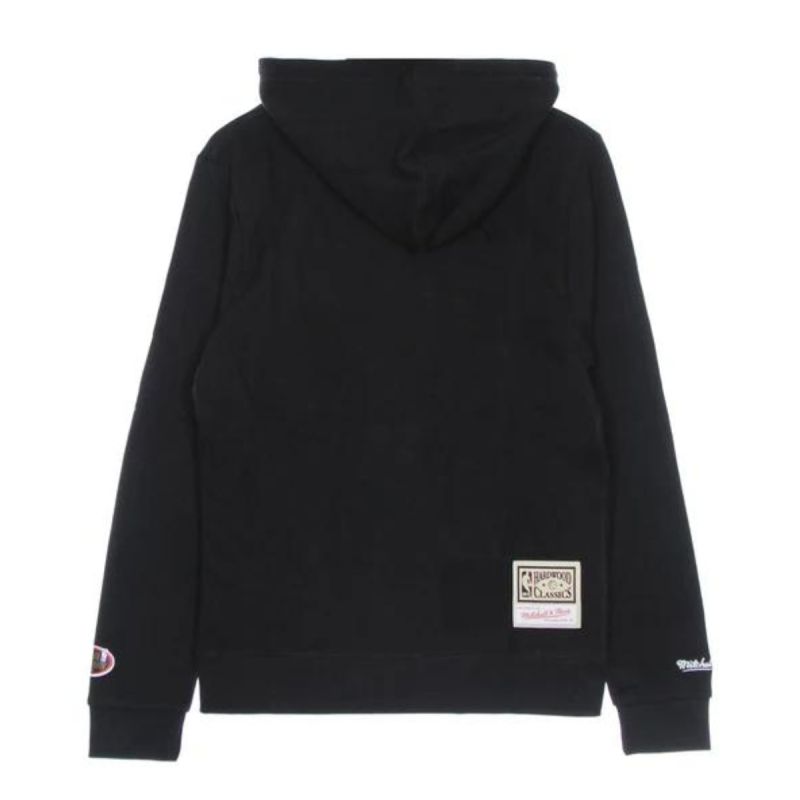 Die Logos von Hardwood Classics, NBA und Mitchell & Ness sind auf dem Etikett auf der Rückseite aufgestickt und verleihen dem Sweatshirt Eleganz und einen offiziellen Charakter.