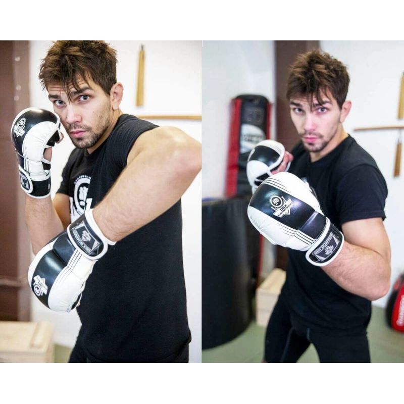 Der doppellagige, dichte Schaumstoff absorbiert die Wucht von Schlägen, sodass Sie in Vollkontaktsituationen trainieren können, ohne Mikroverletzungen befürchten zu müssen. Der verlängerte, doppelt gewickelte Klettverschluss fixiert das Handgelenk wie eine Stahlrüstung, und das anatomische Profil ermöglicht Ihnen einen schnellen Übergang von Boxkombinationen zu effektivem Grappling oder Ground-and-Pounding.