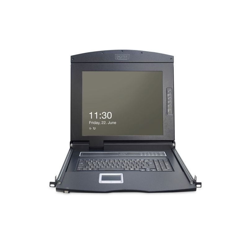 22. Modulare KVM-Konsole mit 17-Zoll-TFT-LCD-Bildschirm, 1 VGA-Anschluss, Touchpad, GE-Tastatur, schwarz