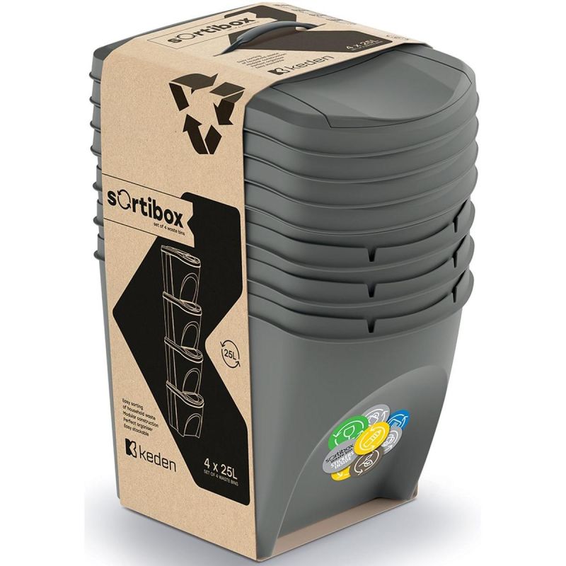 Sie suchen eine vielseitige Lösung zum Entsorgen und Sortieren von Abfällen? Das 25-Liter-Sortibox-Set (4-teilig) in Steingrau ist perfekt für diese Aufgabe!