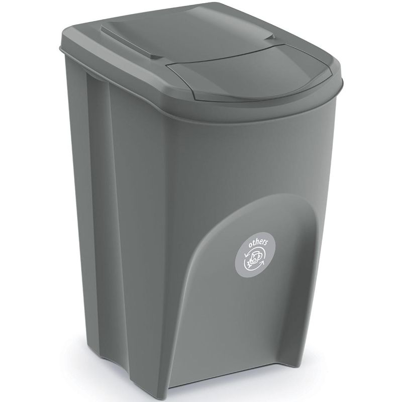 Jeder Behälter ist mit einer Klappe im Deckel ausgestattet, die das Entsorgen von Abfall und Müll erleichtert und die Freisetzung unangenehmer Gerüche verhindert.