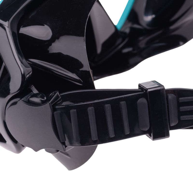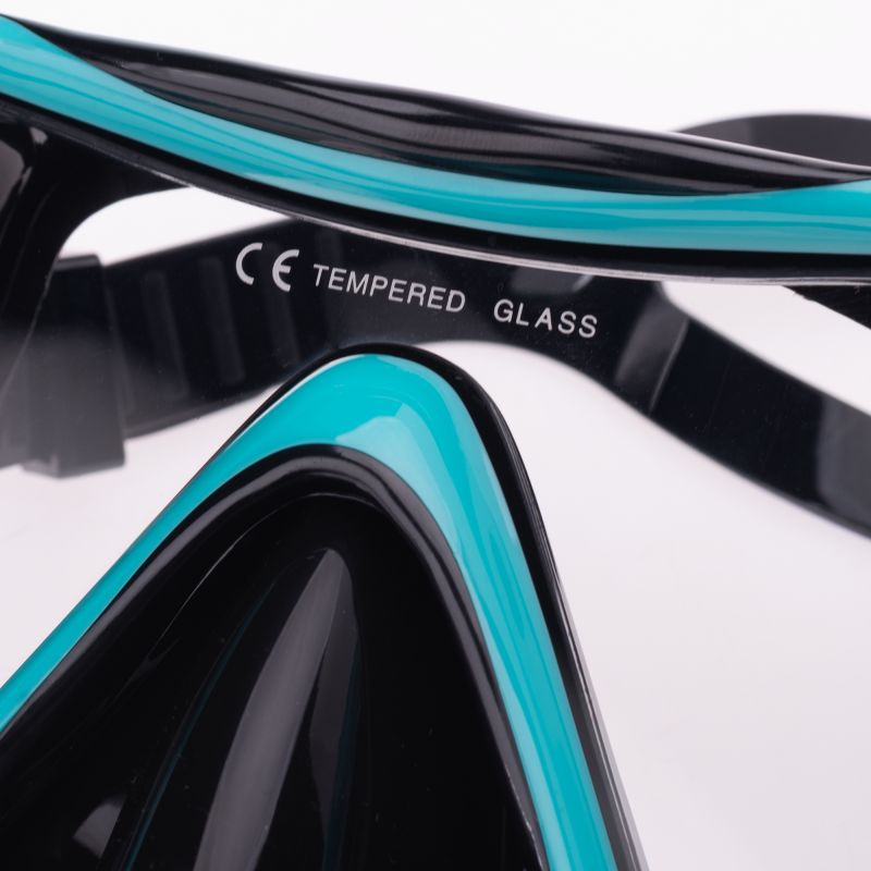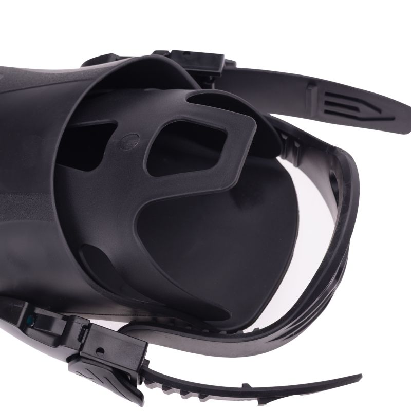 Schnorchelset, Größe: Erwachsene, Materialzusammensetzung: Flossen: PP, TPE, Maske: Linsen: Gehärtetes Glas, Gesichtsmaske: Flüssigsilikon, Gurt: Flüssigsilikon, Rahmen: PC (Polycarbonat), Knopf: PC (Polycarbonat), Tauchrohr: Mundstück: Lebensmittelechtes Silikon, Rohr: Lebensmittelechtes Silikon, Oberteil: PC (Polycarbonat), Unterteil: PC (Polycarbonat), Schnalle: POM (Polyoxymethylen)