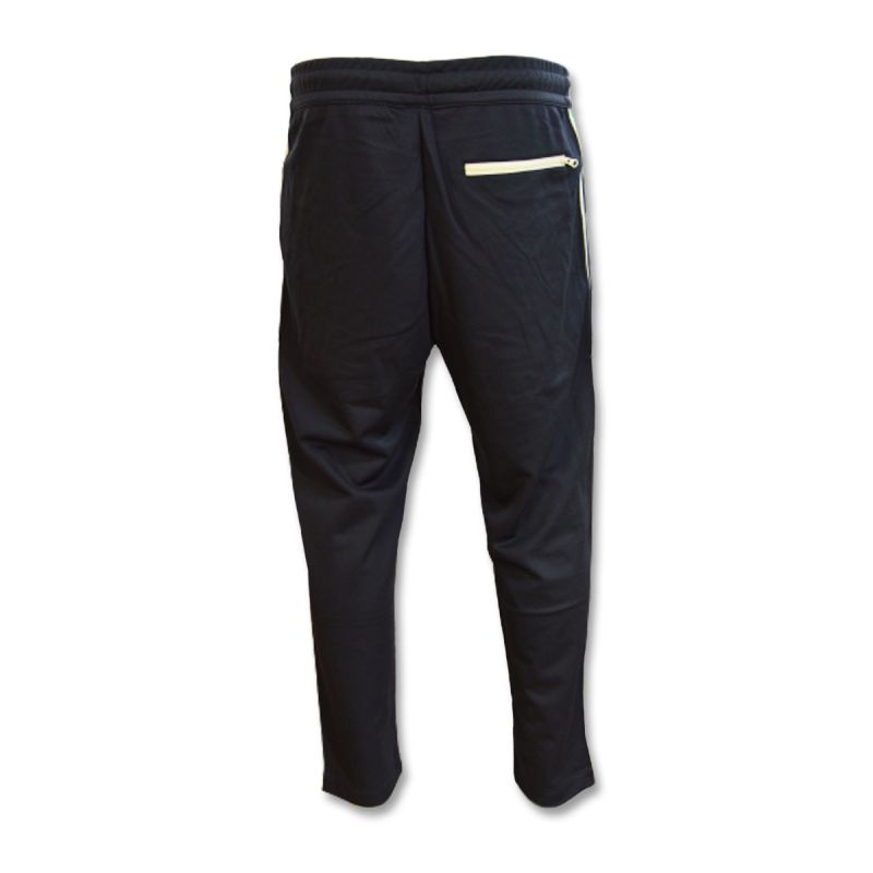 Klassische Trainingsanzüge in Schwarz mit hellen Elementen.