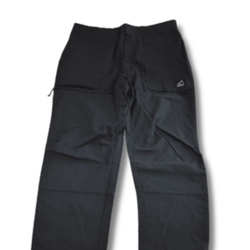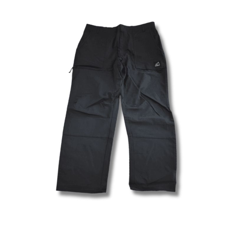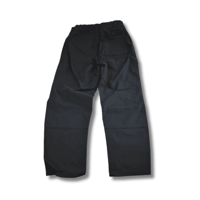 Klassische, weite Hose in Schwarz mit kleinem Aufdruck am Bein.