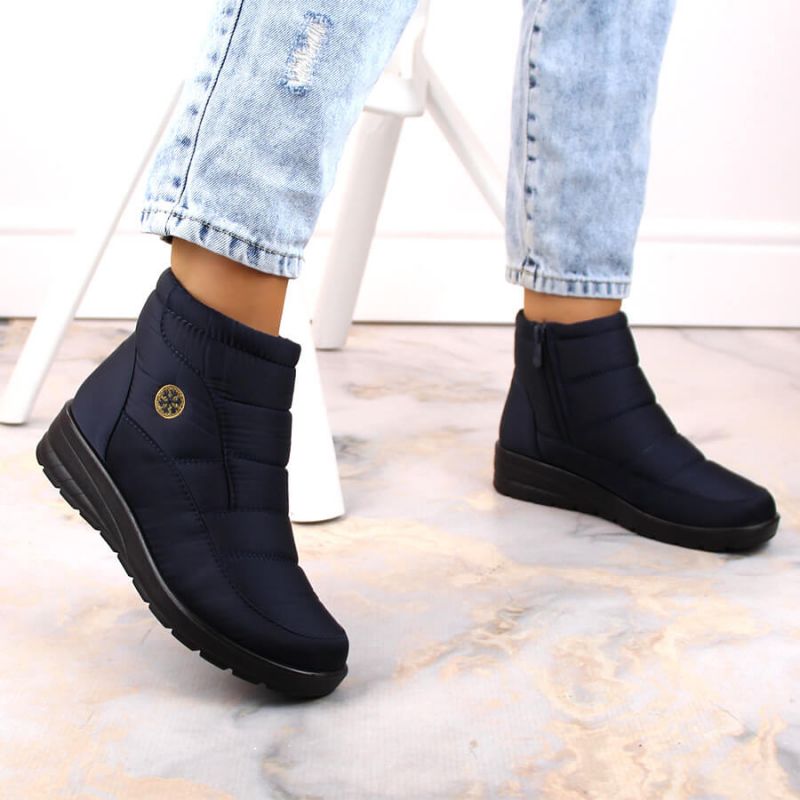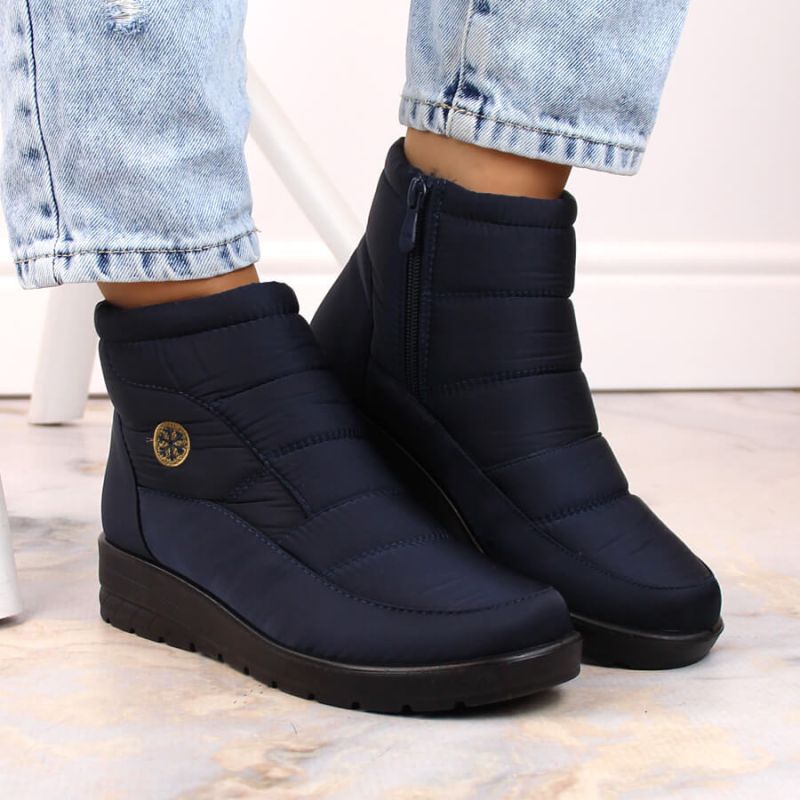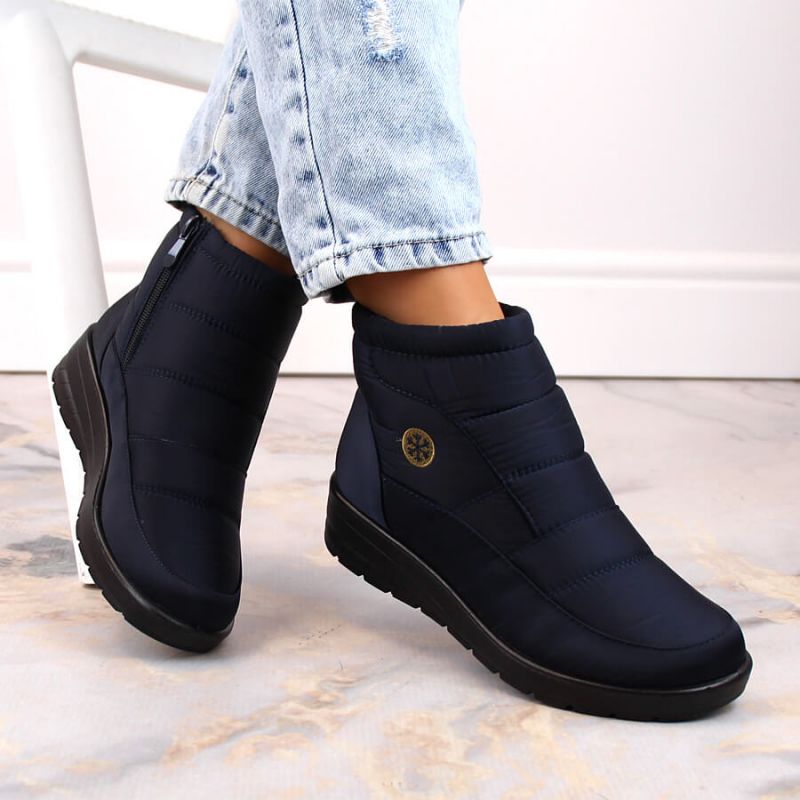 News W EVE437B marineblaue Schneestiefel mit Keilabsatz
