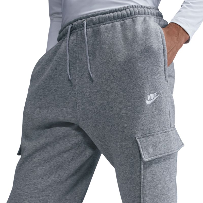 Nike Club Herrenhose, Grau FN3805 063. Diese Nike Herrenhose ist perfekt für jeden Tag. Weiches, angerautes Strickmaterial. Eine Gesäßtasche mit Druckknopfverschluss, Seitentaschen und Cargotaschen bieten Platz für all Ihre wichtigen Dinge. Elastischer Bund mit verstellbarem Kordelzug. Spezifikationen: Hauptmaterial: 67–81 % Baumwolle, 19–33 % Polyester. Seitentaschen (Handrücken) / Gesäßtasche: 100 % Baumwolle. Die Materialzusammensetzung kann variieren. Details siehe Etikett. Gesticktes Nike Futura Logo.