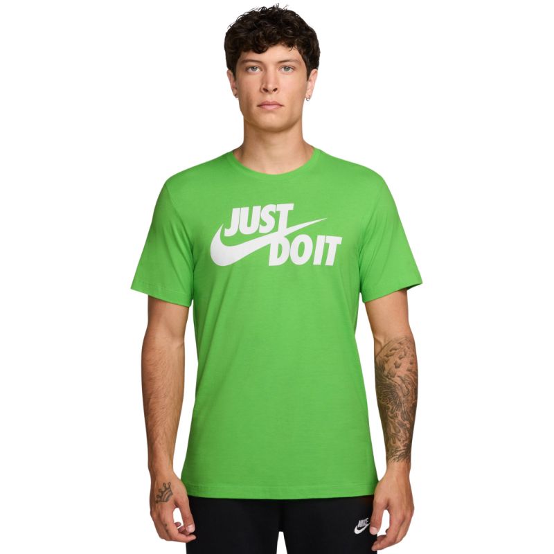Nike „Just Do It“ Swoosh Grün AR5006 308 Herren-T-Shirt. Dieses Nike Herren-T-Shirt ist perfekt für den Alltag. Es besticht durch ein großes Logo und ist aus Baumwolle gefertigt. Die normale Passform wird durch einen dezenten Rippstrickkragen abgerundet. Material: 100 % Baumwolle