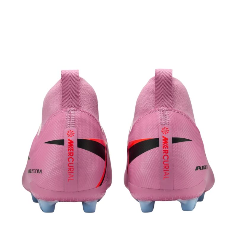 Nike Zoom Mercurial Superfly 10 Academy AG FQ8308 600 Kinder-Fußballschuhe. Diese Nike Kinder-Fußballschuhe sind für den semiprofessionellen Einsatz auf Kunstrasenplätzen konzipiert. Sie stammen aus der Scary Good Kollektion. Die Schuhe verfügen über ein leichtes, schnürsenkelloses NikeSkin-Obermaterial aus Synthetik mit Chevron-Muster. Sie sind mit einer Anziehlasche und einem Riemen ausgestattet. Der Dynamic Fit-Kragen besteht aus weichem, flexiblem Material und umschließt den Knöchel. Die Zunge ist gestrickt und die Einlegesohle gepolstert. Die Außensohle verfügt über geformte Stollen. Das Air Zoom-Element bietet optimale Dämpfung.