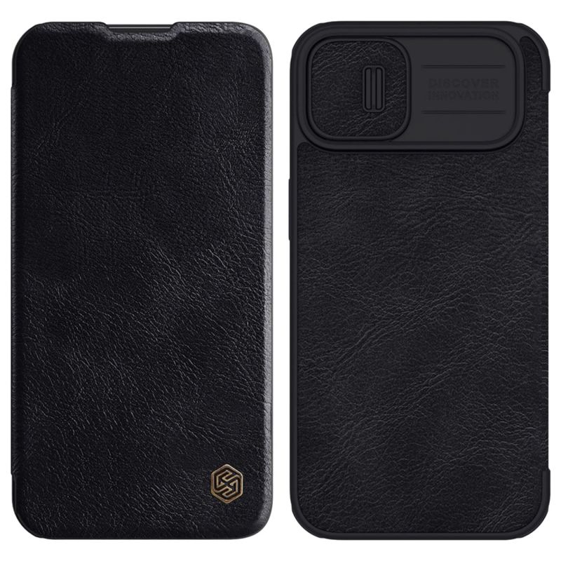 Nillkin Qin Leder Pro Hülle iPhone 14 Plus Kamera Cover Holster Cover Flip Case Schwarz