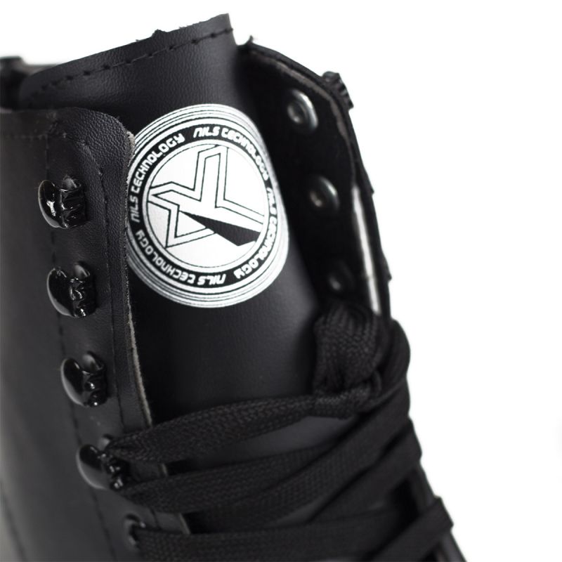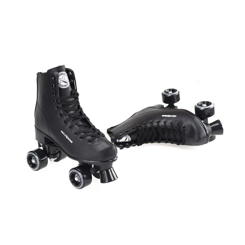 Die Nils Extreme sind schwarze Rollschuhe für den Freizeitsport. Sie bestehen aus hochwertigem Kunstleder und sind daher besonders strapazierfähig und langlebig. Die Schnürung ermöglicht eine individuelle Passform, während Bremsen für maximale Sicherheit sorgen. Die Rollschuhe NQ8400 Nils Extreme sind in zwei Ausführungen erhältlich: Schwarz und Weiß.