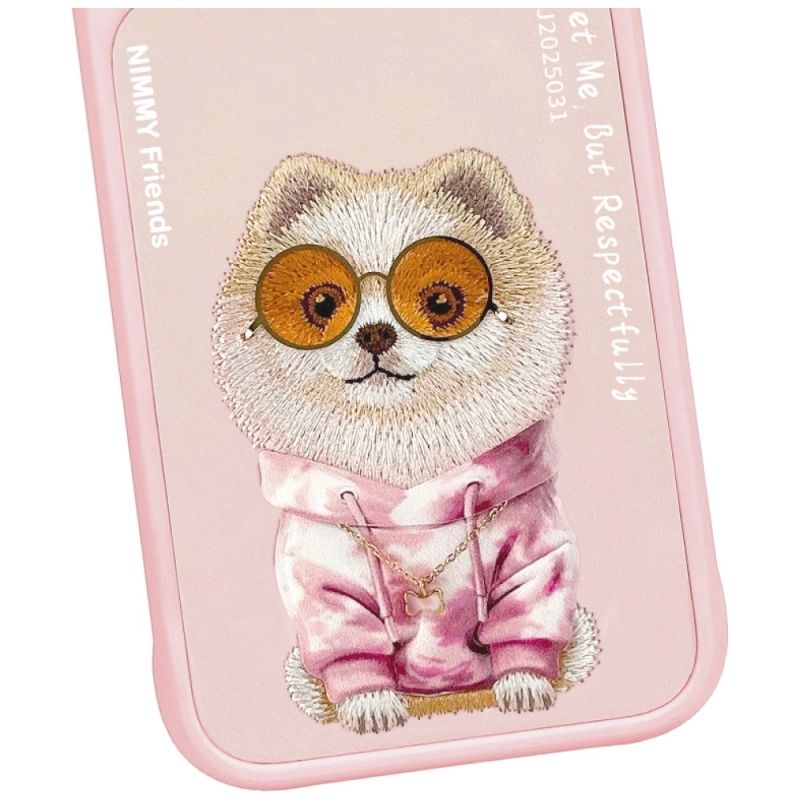 Nimmy Glasses Cool Dog Kollektion Typ: Hartschalenetui Material: TPU / PC / Metall / PES / PU Farbe: Rosa Kompatibilität: iPhone 17 Pro| Name | Details |