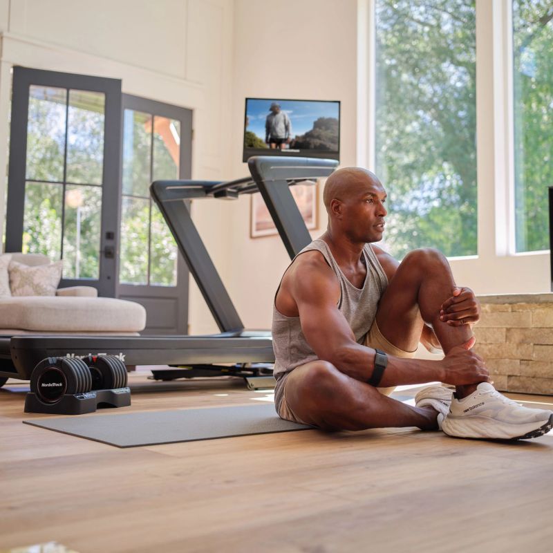 Einfaches Zusammenklappen des Laufbandes mit dem SpaceSaver® -Mechanismus und dem EasyLift™ Assist -System