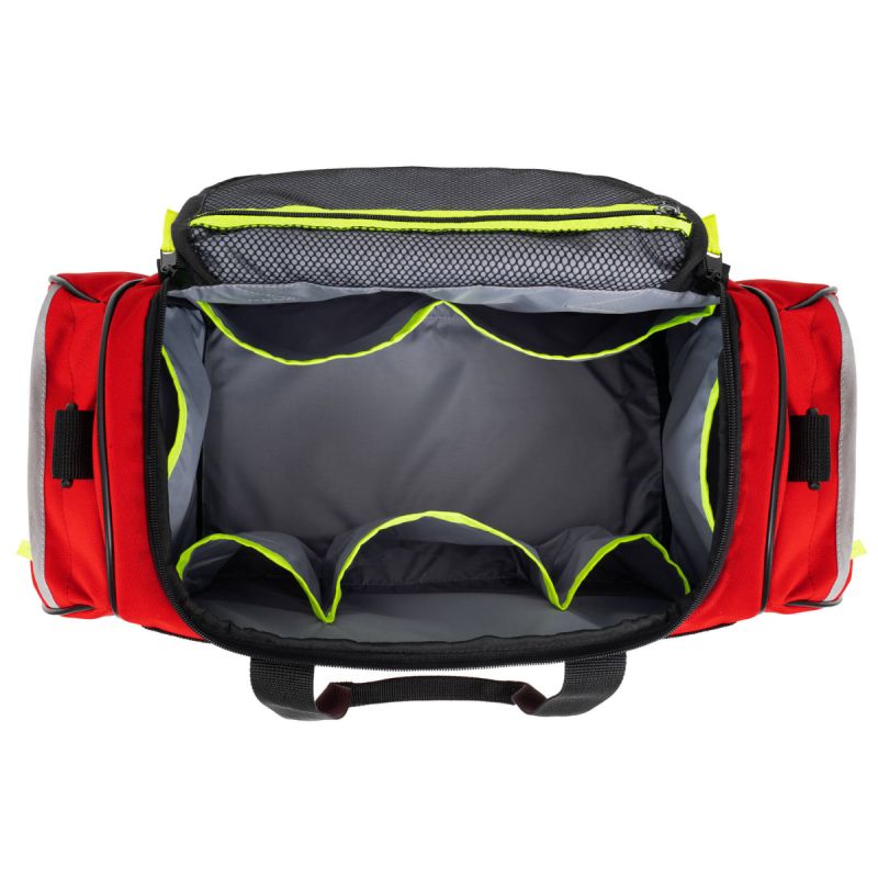 Die mit Schaumstoff ausgekleidete Tasche an der Vorderseite der Tasche ist für einen herausnehmbaren Ampullenhalter vorgesehen, der 14 große und 22 kleine Ampullen fasst - dieser Ampullenhalter ist im Taschenset enthalten.