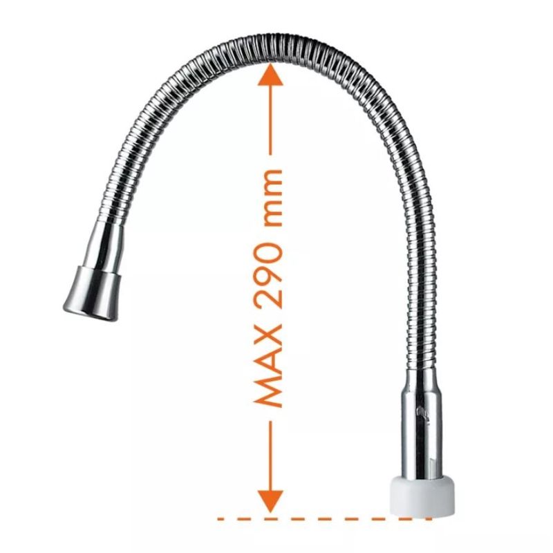 Zubehör inklusive: Zwei Ausläufe – ein starrer und ein flexibler
