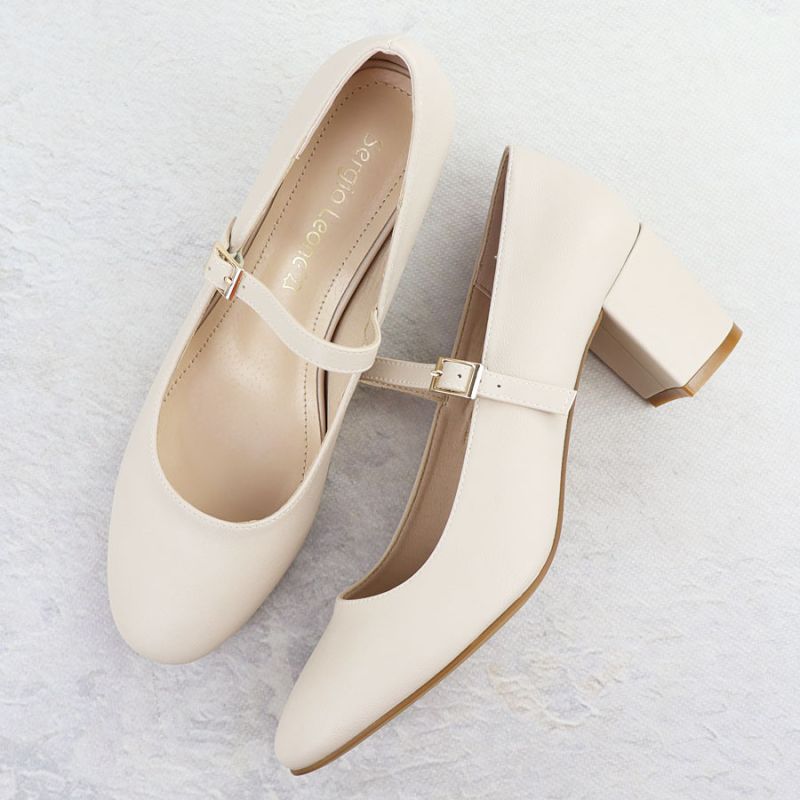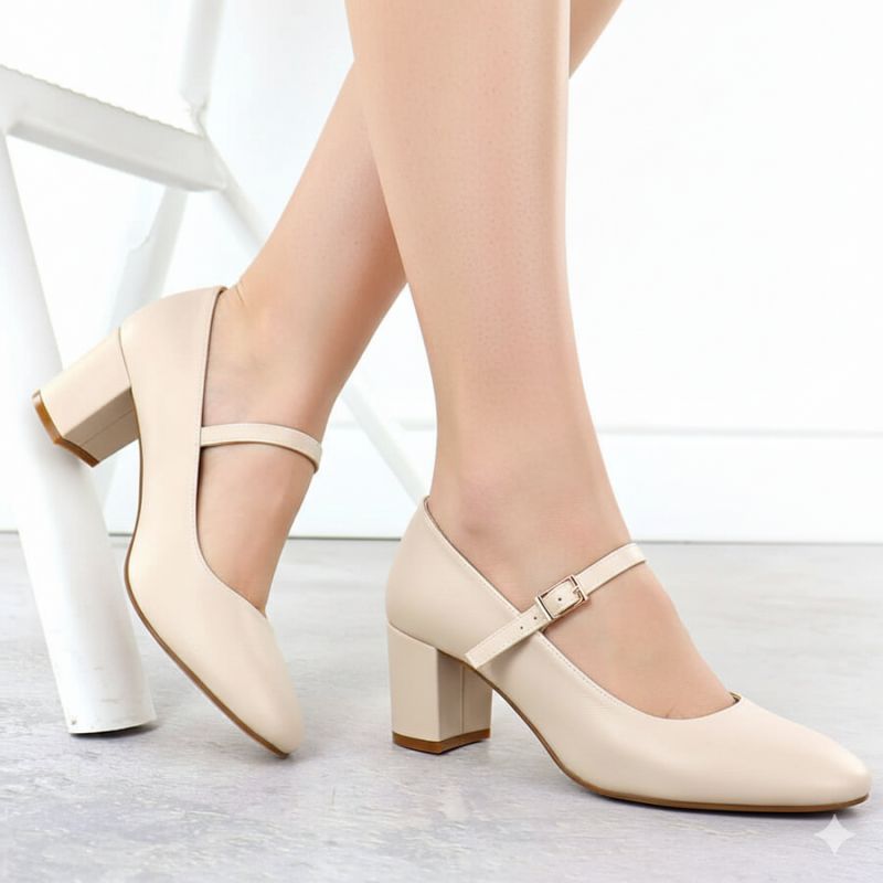 Nudefarbene Pumps mit niedrigem Absatz und Riemchen von Sergio Leone (Modell PB176)